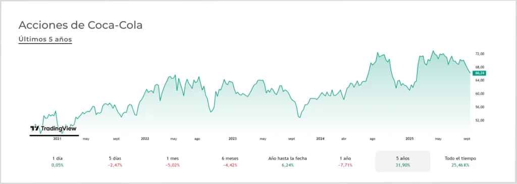 - Dividendo atractivo: Coca-Cola es conocida por ser un “dividend aristocrat,” lo que significa que ha incrementado sus dividendos anualmente durante más de 25 años consecutivos, ofreciendo retornos consistentes a los inversores.